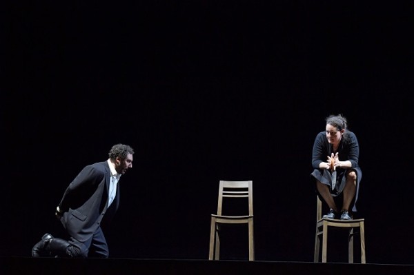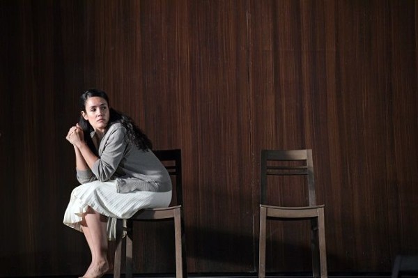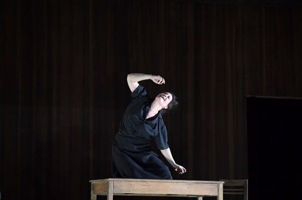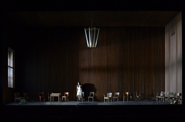 Das Loy-typische Einheitsbühnenbild (Raimund Orfeo Voigt) ist dieses Mal ein kahler, schmucklos aus dunklem Holz gezimmerter Kasten, der düster vor sich hinbrütet, und der im Laufe der Aufführung durch eine sich immer weiter absenkende Decke eine zunehmend klaustrophobische Wirkung verbreitet. Links befindet sich ein Fenster, durch dessen trübe Scheiben das Mondlicht dringt. Am Boden gibt es eine Luke, unter der die gallische Druidin Norma ihre beiden Kinder verbirgt. Sie stammen aus einer heimlichen Beziehung mit dem römischen Anführer Pollione. Mit seinen Truppen ist er der Repräsentant einer grausamen Besatzungsmacht. Durch die verbotene Liebe zum Feind übt Norma Verrat an ihrem Volk, dessen spirituelle Anführerin sie ist. Loy nimmt diesen Kern und transformiert ihn in eine in den 1940er Jahren angesiedelte Geschichte eines Widerstandskampfes. Dabei standen ihm die von den Nazis besetzten Niederlande vor Augen. Er geht dabei jedoch sehr dezent vor, zeigt keine NS-Uniformen, Hakenkreuze, Maschinengewehre oder sonstigen Plattheiten, sondern beläßt es dabei, über die schlichten Kostüme (Ursula Renzenbrink) eine zeitliche Verortung mehr anzudeuten, als sie vorzuführen. Letztlich kommt es darauf auch nicht an, denn die Geschichte einer zwischen der Liebe zu den eigenen Kindern, zum heimlichen Geliebten und zum eigenen Volk verzweifelt zerrissenen Frau erhält durch die Konzentration auf innere Konflikte etwas Zeitloses. Was in dieser Produktion jedoch zu selten gelingt, ist das Erzeugen nachhaltiger Bildeindrücke. Der schwach beleuchtete Holzkasten brütet trostlos vor sich hin, und trostlos agieren darin die grau gekleideten Darsteller. Wenn nicht ein paar Stühle und ein Tisch herumstünden, hätte man das Ganze auch ohne Kulissen spielen können. Und mitunter geschieht genau das. Immer wieder nämlich geht ein schwarzer Vorhang herunter und verbirgt das Bühnenbild, während vor dieser dunklen Wand auf dem schmalen Streifen bis zum Orchestergraben die Handlung weitergeht. Am Ende, wenn Norma in einem Akt der Selbstopferung laut Libretto einen Scheiterhaufen besteigen soll, züngeln ein paar mickrige Flammen um die Stuhlbeine herum. Das ist dann doch ein recht kraftloser Schluß.