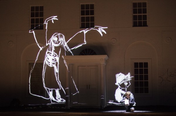Die Guth-typische stumme Figur mußte der Regisseur dieses Mal nicht hinzuerfinden. Im Libretto ist von ihr immer wieder die Rede: Es ist Flavio, der halbwüchsige Sohn des Herrscherpaares Bertarido und Rodelinda. Dieses Kind mußte erleben, wie sein Vater in einem Streit um die langobardische Königsherrschaft den eigenen Bruder tötete, floh, dabei Frau und Kind zurückließ, wo sie nun einem Usurpator, Herzog Grimoaldo, ausgesetzt sind, der den Thron an sich gerissen hat und Rodelinda Avancen macht. Bertarido läßt sich für tot erklären, kehrt jedoch heimlich zurück, um Frau und Sohn zu retten, wird entdeckt, eingekerkert und erneut fälschlich für tot erklärt. Der Regisseur stellt sich nun die Frage, was diese aufwühlenden Ereignisse wohl in einer Kinderseele bewirken. Und so erleben wir als zentrale Figur den kleinen Flavio, stumm und verängstigt, wie er seine Erlebnisse in Kinderzeichnungen zu Papier kritzelt. Seine wilden Skizzen werden auf das Mauerwerk projiziert. So zeigt sich, daß er alle Erwachsenen um ihn herum als Monster sieht, übergroß und bedrohlich, mit zu Fratzen verzerrten Gesichtern. Schlimmer noch: Diese Monster nehmen Gestalt an und spuken durch das Haus. Natürlich kann nur er sie wahrnehmen.