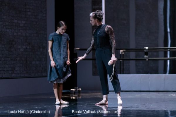 Beginnen wir mit Beate Vollack – es war zweifellos i h r Abend! Die 51-jährige Berlinerin ist seit der vorigen Saison Ballettdirektorin in Graz, sie hatte für Sergej Prokofjews Ballett eine eigene Choreographie geschaffen, diese mit dem Grazer Ballettensemble und der Ballettschule der Oper Graz erarbeitet und sie tanzte auch selbst die Figur der Stiefmutter, die sie schon im Jahre 2000 in der Version von John Neumeier an der Staatsoper München verkörpert hatte. Ganz anders als Neumeier, der den Tod und das Begräbnis der Mutter mit düsteren Figuren an den Anfang stellte, vermittelte uns die Choreographie von Beate Vollack den Traum vom Ballett, den Cinderella in einer Ballettschule träumt. Die Produktion beherrschen helle Bilder und Kostüme. Der Bühnen- und Kostümbildner (und frühere Balletttänzer) Dieter Eisenmann verwendete in seiner Ausstattung geschickt Ballettspiegel, um den Raum zu weiten und wohl auch um ein wenig das Märchenhaft-Irreale zu vermitteln. Die Choreographie von Beate Vollack zeigte uns eine freundlich-heitere Ballettatmosphäre – immer wieder erfrischend aufgelockert durch augenzwinkernde, geradezu romantische Ironie, vor allem im 3.Akt. Tragische Untertöne – wie sie die Dirigentin Oksana Lyniv etwa zu Recht in der Grande Valse hört – werden in der Choreographie nicht sichtbar. Beate Vollack war als Stiefmutter und strenge Ballettmeisterin eine bühnenbeherrschende, brillant gestaltete Figur – sie darf herrlich ausdrucksstark dabei ihre komödiantische Vielfalt in grotesker Koketterie austoben (wie ihr schon vor fast 20 Jahren die Münchner Kritik bescheinigte).