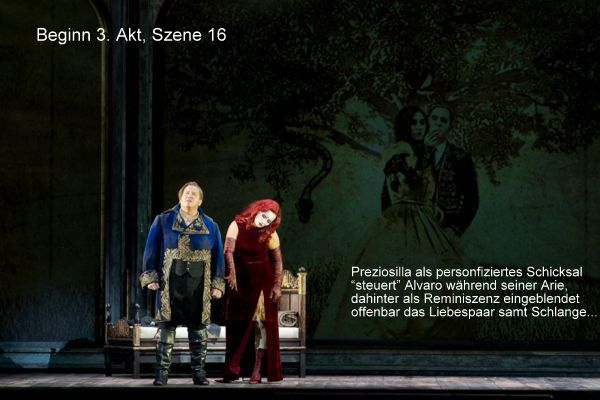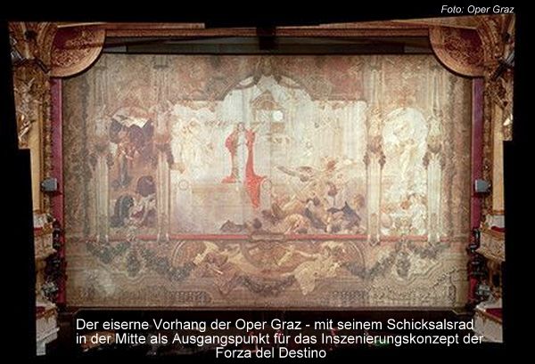 Alle Ankündigungen der Oper Graz für die Eröffnungspremiere der Saison 2021/22 lauten Die Macht des Schicksals, sodass man vermuten könnte, das Verdi-Werk werde wie vor Jahrzehnten in deutscher Sprache aufgeführt. Dem ist natürlich nicht so, aber wahrscheinlich meinten Intendanz und Dramaturgie, mit dem deutschen Titel könne man vielleicht auch Publikum in die Oper bringen, das wenig opernaffin ist und mit La Forza del Destino nichts anzufangen weiß. Ich konnte die Premiere nicht besuchen. Da war ich in Stuttgart beim Rosenkavalier (wen’s interessiert, kann hier meinen Bericht nachlesen). Mein Bericht über die zweite Vorstellung der Grazer Neuproduktion: Das szenische Leadingteam (Eva-Maria Höckmayr-Inszenierung, Momme Hinrichs-Bühne&Videodesign, Julia Rösler-Kostüme, Olaf Freese-Licht, Marlene Hahn, Alexander Meier-Dörzenbach-Dramaturgie) hat dem Werk eine Bilder-und Videoflut samt Neudeutungen übergestülpt. In einem Gespräch hatte die Regisseurin dies als großes bildgewaltiges Musiktheater bezeichnet. Auf der Homepage der Oper Graz kann man nicht nur dieses Gespräch abrufen, sondern auch viele Produktionsfotos und die Pressestimmen über die Premiere finden. Ich will daher nicht neuerlich über die Inszenierung schreiben, sondern an den Anfang meines Berichts diesmal einfache eine (kommentierte!) Bilderflut stellen – ich denke, das spricht für sich!