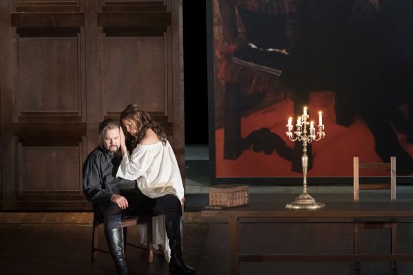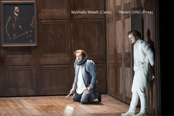 Mönch und Männerchor bleiben unsichtbar. König, Königin und Prinz sind knieend ins Gebet versunken – Filippo klammert sich an seinen Rosenkranz, Elisabetta an ihr Gebetbuch und Carlo an einen Dolch. Die Hörner intonieren prachtvoll, Chor und Posaunen setzen klangvoll ein – nur die Intonation des Mönchs von Tapani Plathan ist zunächst ein wenig unsicher. Aber er fasst sich rasch und unter der ruhig-souveränen Leitung von Opernchefin Oksana Lyniv endet diese erste Szene in melancholisch-warmem Orchesterklang. Sofort ist man als Publikum eingefangen – sowohl musikalisch als auch szenisch. In der Szene des Carlos wird stark das spürbar, was Verdi an Ricordi schrieb: Don Carlos selbst war ein Schwachsinniger, cholerisch und unsympathisch. Der ukrainische Tenor Timo Riihonen stürzt sich hektisch ins Geschehen – auch seine Stimmführung ist anfangs unruhig, wenn auch mit absolut sicher-strahlenden Spitzentönen. Eine erfreuliche Überraschung ist das Rollendebüt des erst 25-jährigen, aus dem Opernstudio hervorgegangenen bosnischen Bariton Neven Crnić. Sein schön timbriertes Organ hat deutlich an Volumen und Prägnanz gewonnen. An darstellerischem Profil wird sein Posa noch dazugewinnen. Das fallweise und völlig unnötige Forcieren der Mittellage wird wohl auf eine verständliche Premierennervosität zurückzuführen sein. Das berühmte Duett Carlo-Posa ist in weiten Teilen im Piano geschrieben. Malafii und Crnic haben sich da allzu sehr von ihren Emotionen mitreißen lassen.