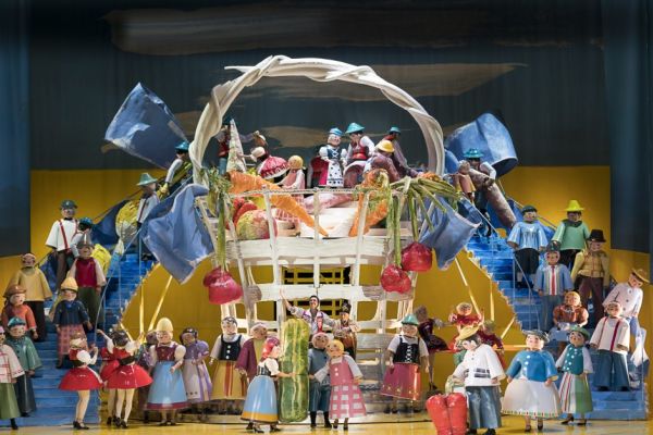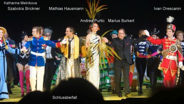 Chor und Ballett waren durchgehend Matrjoschka – Püppchen, zwischen denen einzig die Solisten als menschliche Figuren agierten. Das gab dem Stück von vornherein eine surreal-märchenhafte Atmosphäre. Durch diese Stilisierung – die keinerlei verunglimpfende Karikierung bedingte! – wurde sehr geschickt eine heute wohl nicht mehr erträgliche Operettenseligkeit der 1930-er Jahre vermieden und ein vergnüglicher bunter Bilderbogen geschaffen, in dem die Handlung ganz dem Libretto entsprechend erzählt werden konnte. Das nenne ich eine gelungene zeitgemäße Operetteninszenierung: das Stück wird ernst genommen, ins Märchenhafte überhöht und dadurch von seiner Zeitgebundenheit befreit.