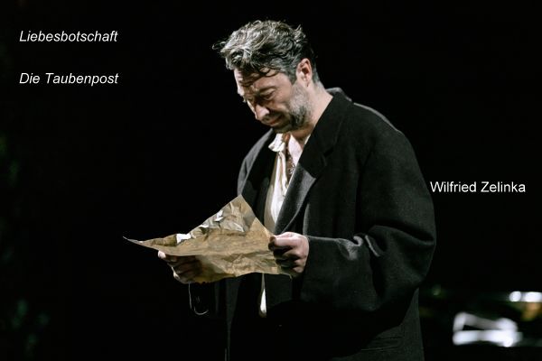 Dieses Schlußlied wird ohne Ballett nur in Einsamkeit vom Solisten gestaltet. Ein überzeugendes Bild zu dem, was der Choreograph Andreas Heise im Programmheft schreibt: ‚Die Taubenpost‘ ist gleichsam die Zusammenfassung von Schuberts Leben, denn diese herzzerreißende Melodie benennt in der wiederholt vorgebrachten Frage die Sehnsucht nach etwas Unerfülltem.