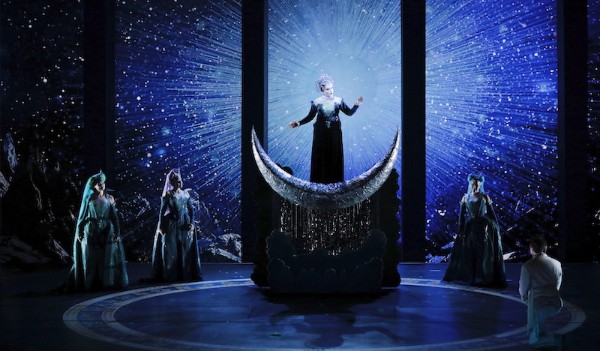 Seine Ausstattung, die in kraftvollen Farben in der ins Staatenhaus gebauten Guckkastenbühne und in unglaublicher Detailverliebtheit in den Kostümen einen höchst geschmackvollen und in klarer ästhetischer Linie gezogenen Bogen gibt, erschafft eine echte Zauberwelt, die mittels raffinierter verschiebbarer Wände, Versenkungen und Videoprojektionen die Nüchternheit des Kölner Operninterims vergessen lässt.