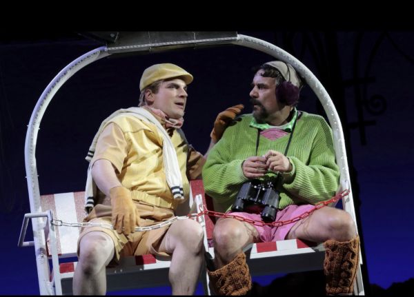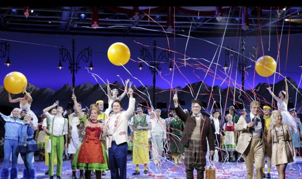 Das „Weiße Rössl“ ist eine krachlederne Operette mit viel Sentiment, gekrönt vom finalen, fast schon nicht mehr ertragbaren Kaiser-Auftritt. Da gibt es natürlich kein Vorbeikommen. Dennoch kann man dagegen inspiriert angehen, wie es beispielsweise bei der Aufführung in der Berliner Bar der Vernunft 1994 geschah. Doch hier benötigte man nur ein kleines Instrumentalensemble. Inzwischen wurde aber die Originalinstrumentation wiederaufgefunden (wo und wie verrät der fachkundige Programmheftbeitrag von Stefan Frey leider nicht), die wegen ihrer Authentizität fraglos Präsenzrecht beanspruchen kann. Bei der Kölner „Rössl“-Produktion wirkt der Klang, welchen das rückwärtig hinter der Szene positionierte Gürzenich-Orchester unter Uwe Theimer erzeugt, freilich etwas scwammig, auch fehlt es teilweise an stimulierendem Pep.