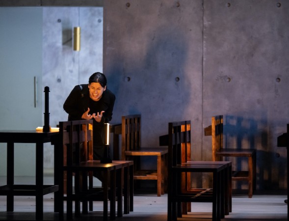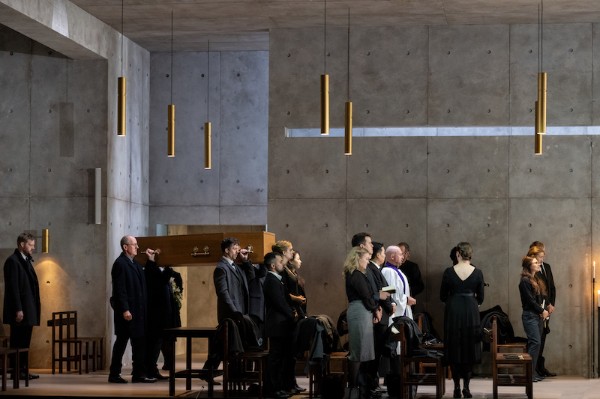 „Miranda“, eine Koproduktion mit verschiedenen internationalen Theatern, kam bereits 2017 heraus und begeisterte nun mit etwas Corona-Verzögerung das Kölner Publikum. Der Musiker Raphael Pichon, Librettistin Cordelia Lynn und Regisseurin Katie Mitchell haben einen rund 90-minütigen Opern-Thriller geschaffen, der packend und kurzweilig ist. Behutsam wird mit Sprache gearbeitet, die Musik Purcells, die mit einigen wenigen Ausnahmen ausschließlich verwendet wird, ist hervorragend mit der Handlung verwoben. Gerade das Archaische, das der Musik des „Oprheus Britannicus“ zu eigen ist, bildet einen spannenden Kontrast zum ansonsten realistisch heutigen Personal auf der Bühne und dem postmodernen Kirchenraum auf der Bühne, den Chloe Lamford entworfen hat. Die Regie Mitchells ist packend und mitreißend. Die Personenführung logisch, die Figuren klar und scharf konturiert gezeichnet.