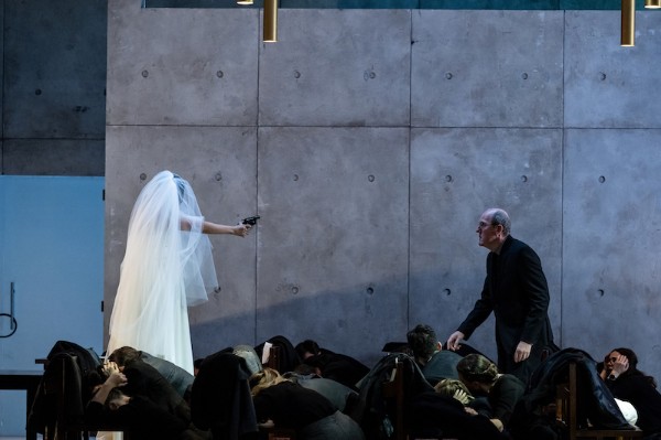 Mit Fortsetzungen ist es ja so eine Sache, haftet ihnen doch immer das Vorurteil an, dass sie eh nicht so gut sein können wie der erste Teil. Die Kölner Produktion „Miranda“ knüpft nun an nichts geringeres als Shakespeares Meisterwerk „Der Sturm“ an. Zum Glück erübrigt sich die Frage welcher Teil nun besser sei, denn dafür sind Theaterstück und neu arrangiertes Pasticcio – denn das ist „Miranda“ – zu verschieden. Was sich zweifelsohne sagen lässt, ist dass die Fortsetzung ein ausgesprochen kurzweiliges, spannendes Stück Musiktheater ist. Aber um was geht es eigentlich? Miranda hat ihren eigenen Selbstmord inszeniert und crasht ihre eigene Trauerfeier. Als Braut mit vorgehaltener Pistole nimmt sie Rache und arbeitet ihre Traumata (aus Teil 1) auf und die sind nicht ohne: Verschleppung, Vergewaltigung und Verheiratung als Kind. Da hat sich einiges aufgestaut und mit dieser emotionalen Aufladung nimmt Miranda zunächst die Trauergesellschaft als Geisel, knöpft sich dann aber ihren Mann Ferdinand und vor allen Dingen ihren Vater Prospero vor, der am Ende über den eigenen Tod sinniert und am liebsten wieder zurück auf die Insel will, von der er im Shakespeareschen Original noch geflüchtet ist.