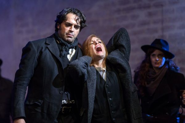 Im eleganten, hautengen schwarzen Spitzenkleid gebärdet sich Carmen wie der Star auf dem roten Teppich bei einem Filmfestival, breitet die Arme aus, um scheinbar den Beifall der Menge entgegen zu nehmen, Dann erstarrt sie wie zur Statue und wartet an der Mauer auf Josés tödlichen Schuss. Theatralisch spitzt das Blut aus ihrem Kopf an die Wand – ein äußerlicher Effekt von zweifelhaftem Geschmack. Dabei gab es gerade hier einige interessante Licht-Stimmungen und -Wechsel (Matthew Marshall) von diffusem Nebel bis zu warmem, südliche Hitze suggerierendem Sonnenlicht.