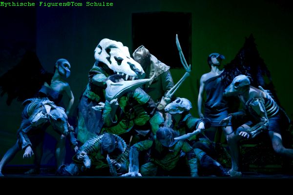 Ein großer Gewinn für diesen Abend, denn hier zeigte sich ein Sänger stimmlich von seiner besten Seite und darstellerisch als sadistischer Tyrann, der seine Nibelungen und seinen Bruder Mime auspeitscht, der jedoch durch seinen Größenwahn auch leicht zu überlisten ist und schließlich in der Gestalt einer Kröte von Wotan und Loge gefangengenommen werden kann. Der finnische Tenor Dan Karlström gefiel als geschundener Mime in seinem kurzen Auftritt. Marina Prudenskaya hatte einen eindrucksvollen Auftritt gemeinsam mit den drei Nornen und ihrer hypnotisierenden Mezzostimme. Ein solcher Mahnruf an Wotan konnte von diesem gar nicht unerhört bleiben… Wotans Göttergattin Fricka war in der Kahle von Mezzosopranistin Kathrin Göring stimmlich bestens aufgehoben. Darstellerisch war sie sehr kokett, obwohl sie bereits jetzt ahnte, von ihrem Gatten betrogen zu werden. Ihre Schwester Freia wurde von Gabriele Scherer mit hellem Sopran dargeboten und spielfreudig wie sexy interpretiert. Sie hütet in ihrem Nebenberuf als Gärtnerin gleich den antiken Hesperiden das verjüngende Obst. Von den drei Rheintöchtern überzeugten Olga Jelínková als Woglinde und Sandra Maxheimer als Wellgunde mit gut geführtem Sopran bzw Mezzosopran. Einziger Wermutstropfen blieb die soubrettenhafte Stimme von Sandra Fechner, die für die erkrankte Sandra Janke eingesprungen war. Immerhin war der Abend aber dadurch gerettet, sodass man ihr kleinere Unsauberkeiten gerne nachsehen wird.