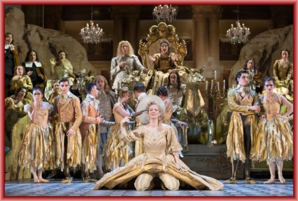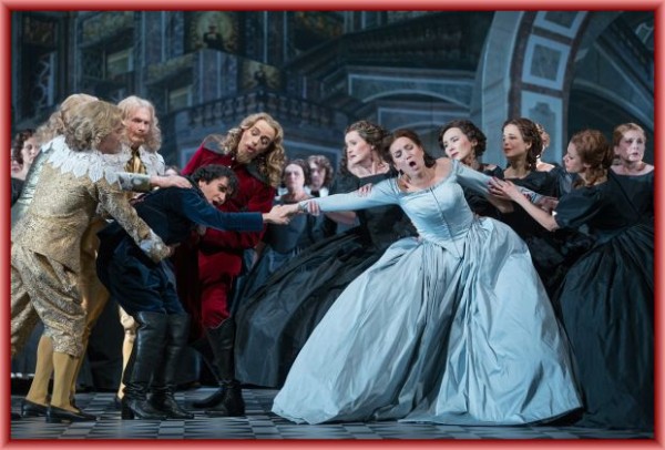 Als szenisches Team hat man sich in Leipzig für den, an der dortigen Oper bekannten, Regisseur Anthony Pilavachi mit Markus Meyer als Ausstatter an seiner Seite entschieden, wie sich zeigte eine gute Entscheidung, denn, meines Erachtens, braucht eine Wiederentdeckung keine verquere Neudeutung, sondern eine positives Hervorkehren der Werte des Stückes, ansonsten hieße das, daß man nicht daran glaubt, dann sollte man es lieber lassen. Doch das ist in Leipzig eben nicht passiert. Dem Auge wird große französische Ausstattunsoper geboten, mit der nötigen Stilisierung auf das geschichtliche Thema, eine Art übersteigerter Historismus mit sichtbaren doppeltem Bildrahmen. Die Kostüme wirken historisch ohne es zu sein, die Herren ganz bei Ludwig XIII. , die Damen eher bei der Zeit der Uraufführung, gibt es doch für unser Empfinden ein ganz rundes Bild, das durch die bewußt eingesetzten Soffittenbühnen unterstrichen wird, zumal die Übergänge zwischen den verschiedenen Schauplätzen fast fließend und ohne große Umbaupausen ineinander übergehen. Je mehr das Drama fortschreitet, um so zurückgenommener wird die Optik, was sehr vorteilhaft für die Oper ist. Pilavachis Personenführung kommt sehr intensiv, manchmal auch stilisiert, herüber, auch hier finden sich durchaus Elemente der Übersteigerung, manchmal sogar eine leichte Nähe zur "Operette", jedoch wird nie das Werk verraten, sondern immer ernst genommen. Es kommt keine Langweile auf, aber auch keine szenische Überfrachtung, die von der Oper unnötig ablenken. Man hat sich auch für die Ballettmusik entschieden, mir persönlich kommt Julia Grunwalds Choreographie etwas flapsig daher, auch wenn ich verstehe, was damit zum Ausdruck gebracht wird, allgemein gefällt das Ballett jedoch. Szenisch kann man von einem durchaus von einem "Wurf" mit großem Schauwert sprechen.