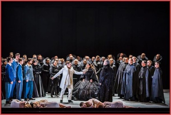 Nach dreieinhalb Stunden verlässt man diese Vorstellung von Verdis DON CARLO nicht unversehrt – man ist optisch erschlagen vom labyrinthartigen, kafkaesken und deshalb ausweglosen Bühnenraum von Markus Meyer, von der Lichtgestaltung durch Guido Petzold, der die stickige Atmosphäre des Escorial (und auch dessen Eiseskälte) mit seinem Lichtdesign so gekonnt einzufangen wusste und von den Kostümen von Sven Bindseil, der mit seiner herausragenden Kostümdramaturgie die Vielschichtigkeit von Verdis wohl düsterster Oper offenbarte.