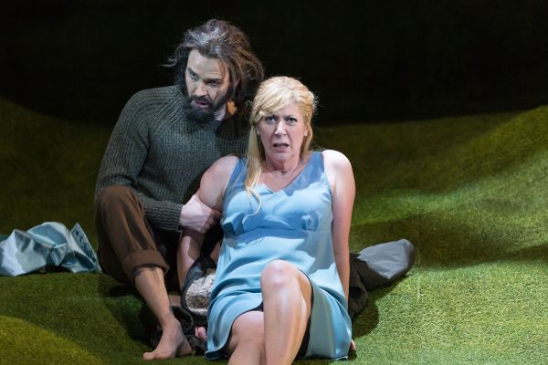 "Judith, eine von uns", so könnte man die Inszenierung von Philipp J. Neumann überschreiben, denn die Protagonistin tritt aus dem Publikum auf. Eine Frau, die dem Schicksal von Kinder, Küche und Kirche entgehen will, eine Waschmaschine droht als Symbol dafür. Sie sucht sich einen unangepassten Hipster, der sie auf die Bühne in eine herbe Natur, eine von kargen Moosen und Flechten geprägte, isländische Hügellandschaft laut Programm, für die ebenfalls der Regisseur zuständig war. Aus der fast mythischen Nebelszenerie pellt sich im Öffnen von Blaubarts Seelentüren immer mehr die Kulisse als Pose heraus, bis Judith herausfindet , das hinter der aufgeführten Harschheit genau die Zukunft lauert, der sie entgehen wollte: Blaubarts noch lebendige Frauen mit Kindern und eben den obligaten Waschmaschinen. Eine sehr lakonische Sicht auf das Werk, die ich interessant finde, jedoch durch ein etwas unentschiedenes Ende um die Wirkung gebracht wird.