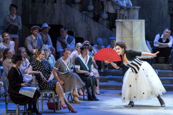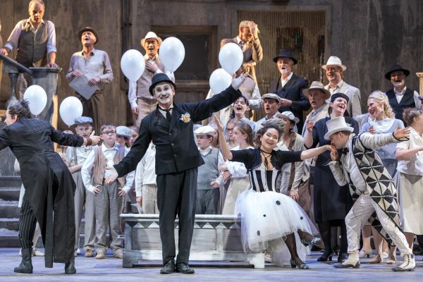 Für mich war der "Bajazzo" ebenfalls frisch und die gründliche Neueinstudierung mit fast sämtlich neubesetzten Darstellern kommt einer Premiere recht nahe. Um es gleich zu sagen: das war der absolut spannendste "Bajazzo", den ich bisher gesehen habe. Warum Anthony Pilavachi nicht auf den großen Bühnen zu finden ist, ist danach nicht zu verstehen. Bestes Handwerk in werkdienlicher Inszenierung, ohne dabei verstaubt zu wirken, hervorragende Personen-und Chorführung; den Verismo-Thriller mit vielen eigenen Kleinigkeiten in schier "Hitchcock`schem Suspense" bis zum Ende gebracht. Karoline Schreibers "Set" zeigt keine Realität, doch verortet in Süditalien. Die attraktive Schwarz-Weiss-Optik erinnert an die Filme des italienischen Neorealismus und lässt nur ganz wenig Rot als Farbe zu. Der dominante Sänger des Abends, im zweiten Teil, ist der Tonio von Luca Grassi, ein zynisch unglücklicher Spielleiter mit prachtvollem Bariton, wieder einmal ein Sänger, bei dem man sich fragt warum, er nicht bekannter ist, gerade in dem doch angeblich so schwer zu besetzendem italienischen Fach.