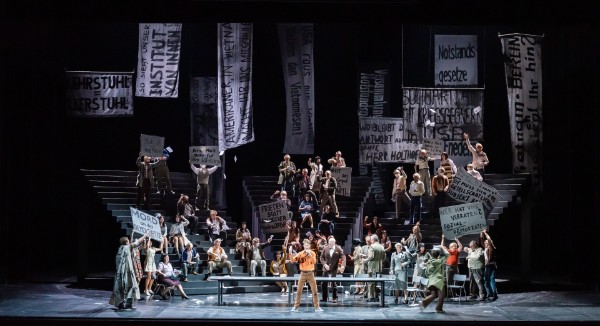 Dem Chor, sprich der Statisterie, gab die Regie ein recht ordentliches Aufgabenpensum. Den Auftrittenwar aber eher ein Agitprop-Charakter zugeordnet.