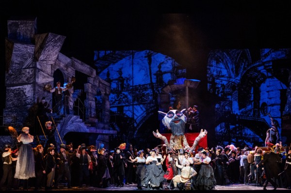 Schon während der Ouvertüre fing das wilde Treiben an, mit Akrobaten auf der Bühne, einem ekstatischen Karnevalszug der durch das Parkett zog und einem riesigen Regen von bunten Konfetti, so wie wir es noch nie in einem Opernhaus erlebt haben. Wir waren zugleich amüsiert und irritiert, denn dabei ging die Musik der Ouvertüre – die Berlioz als das Beste vom ganzen Werk bezeichnete – vollkommen unter. Das war auch global unser Eindruck des ersten Aktes: vor lauter Karnevalstrubel, war an ein konzentriertes Zuhören kaum zu denken. Doch im zweiten handlungsärmeren Akt gab es weniger Trubel und kam die Musik viel mehr zu Geltung, vor allem in den drei Arien, die Berlioz noch kurz vor der Premiere komponiert hatte (es wurde eine Mischfassung mit vielen Strichen gespielt, die „nur“ drei Stunden dauerte.) Szenisch verlief der Abend wie ein „Musical“, mit akrobatischen Pantomimen und Tanzeinlagen, wofür entsprechende Seiltänzer und Zirkus-Künstler engagiert worden waren. Auch das Bühnenbild von Aaron Marsden und die Kostüme von Katrina Linsday waren explizit – für Opernaugen etwas „billig“ – in der Musicalwelt angesiedelt.
