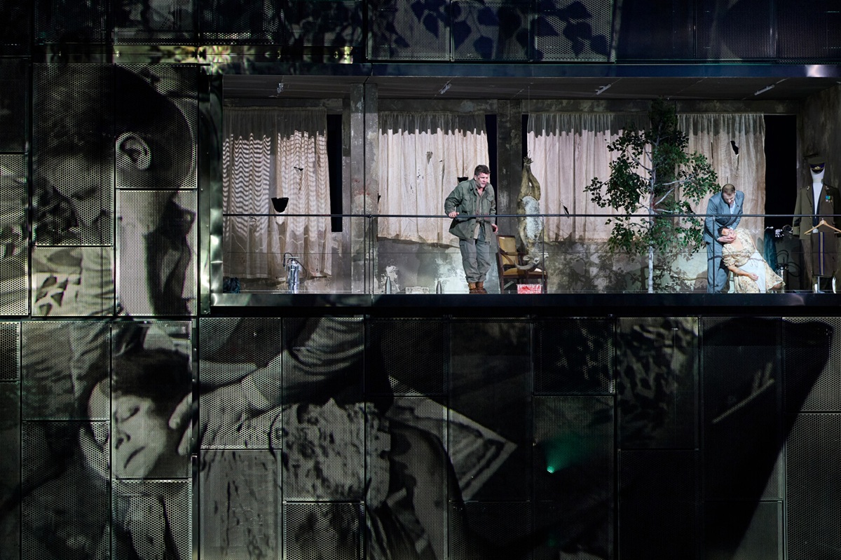 Hundings Hütte im Plattenbau: Stanislas de Barbeyrac (Siegmund), Günther Groissböck (Hunding) und Elza van den Heever (Sieglinde)