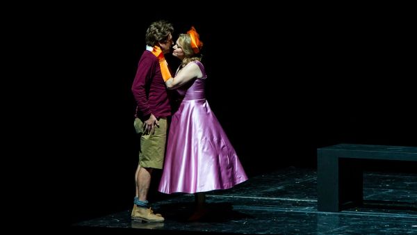 Bis dahin braucht es aber lange, denn Klingsor muss auf seinem Maiskolbenbeet ständig für künstliche Befruchtung sorgen. Er wirkt in seinem rosa Trainingsanzug mit Ornat eher wie ein verkommener Dandy denn als gefährlicher Zauberer. Evgeny Nikitin bleibt, was sein heldenbaritonales Potenzial angeht, etwas hinter meinen Erwartungen zurück, spielt die ihm zugewiesene Rolle aber eindringlich. Der Stimme mangelt es bei guter Höhe doch an Volumen und auch Resonanz. Anja Kampe kommt als Kundry zunächst als Barbie-Puppe daher, lässt aber bald das rosa Kleidchen zugunsten eines schwarzen Negligés fallen. Kampe besticht mit einer äußerst intensiven Darstellung der so komplexen Facetten der Rolle und ihrem in der Mittellage etwas dunkel timbrierten Sopran, den sie perfekt führt und intoniert. Ihr „und lach-te!“ ging mit der Höhe und der direkt nachfolgenden Tiefe wahrlich unter die Haut. Auch die so schwierigen „Irre! Irre!“-Rufe kamen perfekt. Sie dürfte eine der besten Kundrys unserer Zeit werden. Andreas Schager schafft es, Kampe auf Augenhöhe zu begegnen, denn er spielt den Mitleid gewinnenden „Helden“ trotz seines banalen Outfits in überzeugender Weise. Auch stimmlich ist der Österreicher dieser und anderen Wagner-Partien gewachsen. Allein, er singt fast immer nur im Forte und einfach zu oft zu laut. Es wäre schade, wenn dieser schönen heldentenoralen Stimme wegen ständiger Überforderung durch zu hohen Kraftaufwand ein allzu kurzes Leben beschieden wäre. Anna Siminska, Katharina Melnikova, Samantha Gossard sowie Tamara Banjesevic, Anna Palimina und Marie-Luise Dressen singen klangschön und engagiert die Zaubermädchen.