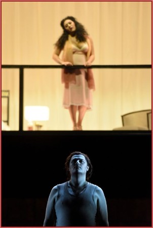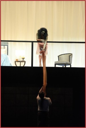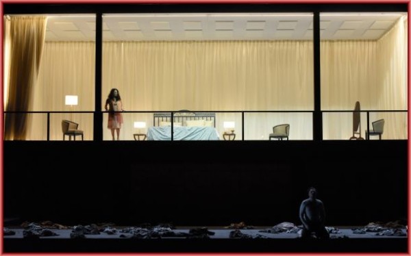 Das ist vielleicht unvermeidlich, wenn die Handlung in Kriegszeiten in Gaza spielt. Wieder gibt es einen Geschlechtertausch: bei „Armide“ ziehen die Soldaten Frauenkleider an (um die gegnerischen Soldaten zu verführen), hier erscheint der Frauenchor in „Voici le printemps“ – das französischen Pendant zu den Blumenmädchen in „Parsifal“ – in Anzug und Krawatte. Aus den Blumen pflückenden Mädchen werden Herren auf Geschäftsreise, die eine Prostituierte in ihr Hotelzimmer bitten. Das ist ein sehr gewagter Einfall, denn etliche Regisseure haben sich in unseren Augen diskreditiert, indem sie Dalila als Hure darstellten (was sie in gewissen Bibelauslegungen wohl war). Denn bei Saint-Saëns lehnt Dalila jede Bezahlung ab, weil sie Samson „nur aus Rache“ umbringen will. Rache wofür? Das ist die Kernfrage, die sich jeder gute Regisseur stellen muss, und Damiano Michieletto fand darauf einige interessante Antworten. Seine Dalila ist keine dicke Hure aus Babylon, die auf dem Sofa liegend wunderschöne Arien in den Saal orgelt – Liszt meinte, Saint-Saëns sei vor allem „der weltbeste Organist“ – sondern ein durch Krieg, Religion, Leidenschaft und Wollust gespaltener Charakter.