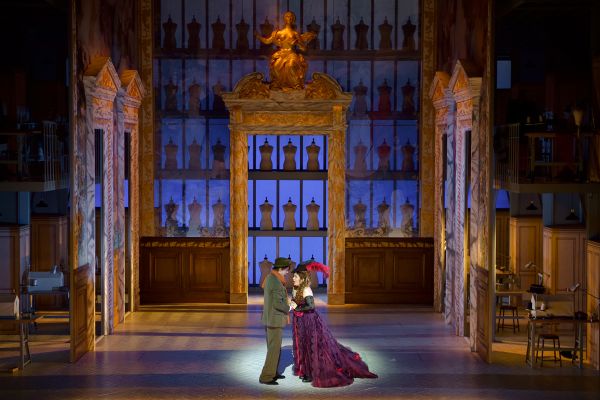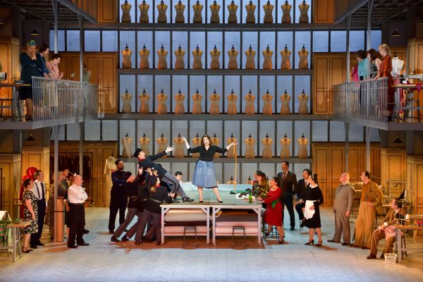 Um ein solches komische Oper über eine Schauspielerin zu inszenieren, engagierte die Opéra Comique die Schauspielerin Anne Kessler, Sociétaire der Comédie-Française, die nun als Opernregisseurin debütiert. Die Wahl ist gut getroffen, denn die Regisseurin überzeugte mit ihrer sehr fein ausgearbeiteten Personenregie, vor allem in den gesprochenen Dialogen. „Madame Favart“, wurde vollkommen strichlos aufgeführt, was für ein heutiges Publikum nicht immer leicht ist. Denn das bedeutet, dass genauso viel gesprochen wie gesungen wird. Nirgendwo auf der Welt spielt man heute noch die ursprüngliche Fassung von „Carmen“ mit allen gesprochenen Dialogen, weil man dafür Sänger-Schauspieler braucht und eben entsprechend lange Probenzeiten. Anne Kessler brachte das junge Ensemble der Opéra Comique – jetzt „Troupe Favart“ genannt – zu einer erstaunlich homogenen Ensembleleistung, in der jeder, auch der Chor, immer in seiner klar charakterisierten Rolle blieb (auch wenn er/sie nicht sang/en). Der einzige Minuspunkt war das Bühnenbild von Andrew D. Edwards, der die Handlung in das Kostümatelier der Opéra Comique verlegte. Dies ist dramaturgisch nachvollziehbar in dieser Verkleidungskomödie und auch nicht unästhetisch – wir sind in Frankreich und nicht im deutschen „Regie-Theater“ -, aber es brachte keinen Mehrwert und stiftete manchmal etwas Verwirrung. Und gerade in diesem Ambiente waren die Kostüme von Bernadette Villard einfach zu schlicht. Da wäre eine Ästhetik wie in dem hochgelobten „Postillon de Lonjumeau“ (siehe Merker 4/2019) vielleicht angebrachter gewesen. Aber auch mit dieser Optik gelang Kessler die für uns beste Inszenierung des Offenbach-Jahres in Frankreich.