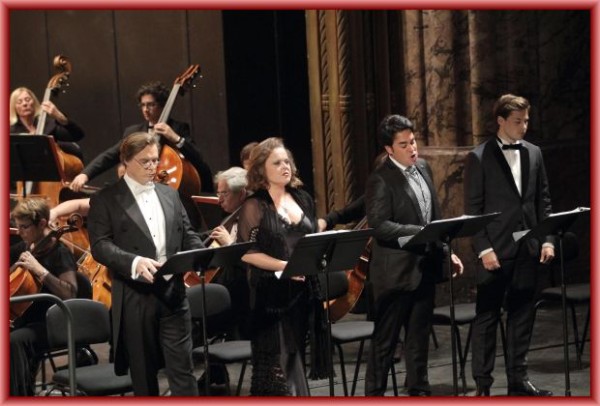 Auch wenn Paolo Arrivabeni keine besonderen Kenntnisse für die grand-opéra zeigte, dirigierte er souverän und hielt die großen Chor– und Orchester-Massen gut beieinander und hatte bei den vielen, rhythmisch oft nicht einfachen Ensembles seine neun Solisten gut im Griff. Ildar Abdrazakov und Jean-François Lapointe, beide mit wirklich internationalem Format, beherrschten als Moïse und Pharaon wie zwei Könige die Bühne. Abdrazakov hat den Moïse schon in Mailand, Rom und Salzburg mit Muti gesungen und ist zweifellos der aktuelle „Rollenträger“ (wie man es im Französischen sagt). Lapointe singt den Pharaon zum ersten Mal, doch er hat ein so großes „métier“, dass man das wirklich keine Sekunde hören konnte. Als dritten müssen wir Nicolas Courjal nennen. Er stand als Osiride und „voix mystérieuse“ fast ganz unten auf der Besetzungsliste, war aber als Sänger der dritte König des Abends – genauso beeindruckend wie in der grand-opéra „Herculaneum“ von Félicien David.
