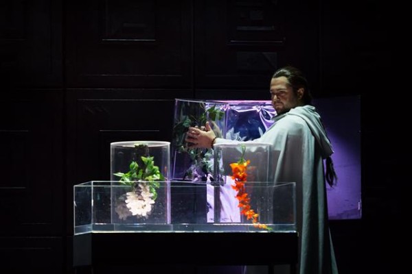 Das Verhältnis zwischen Mann und Frau ist für die italienische Regisseurin Rosetta Cucchi Ausgangspunkt ihrer Interpretation, die im vergangenen Jahr bereits am venzianischen Opernhaus La Fenice zu sehen war. Gezeigt wird eine Welt, in der Frauen der Männerwelt zur Verfügung zu stehen haben, sei es dem Klerus oder dem weltlichen Patriarchat. Verlegt hat sie die Handlung in die Zukunft, in eine künstliche, von Plastik durchzogene Welt, in der im Kloster Pflanzen wie Reliquien aus einer vergangenen Zeit in einer Mischung aus Tresor und Tabernakel konserviert werden.