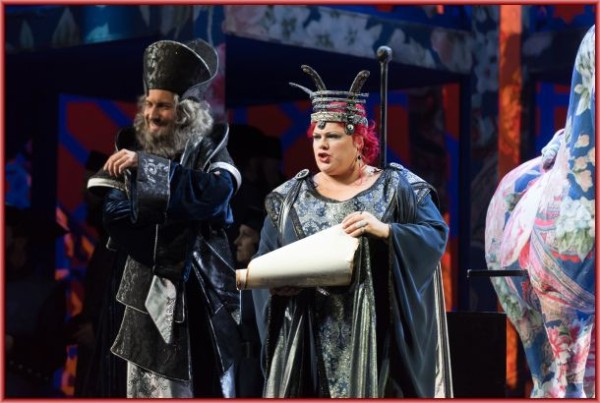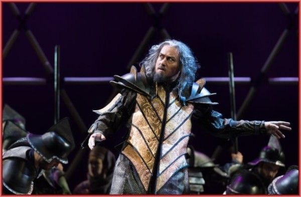 sicher aber nicht dem Hausherren Stefano Mazzonis di Pralafera – da nützt es gar nichts, wenn er uns im Programmheft wissen lässt, dass es heute doch eher die Musik Verdis sei, die uns berühre und dass man ihr in dieser Produktion den ihr gebührenden Respekt zollen möchte. Pardon, aber Verdis Partitur nimmt keineswegs Schaden, wenn man versucht, eine plausible Geschichte jenseits von Auf- und Abmärschen, Standardgesten und Rampensteherei in einem mehr als schlichten, vor allem auf hebräische wie babylonische Ornamentik setzenden, unsäglich kitschig ausgeleuchteten Bühnenbild zu erzählen. Verantwortlich ist hier Alexandre Heyraud, technischer Direktor des belgischen Hauses, dessen Mitarbeiter trotz des schwachen Ergebnisses lang und lautstark beschäftigt waren. Die alle Klischees aufgreifenden, üppigen Kostüme von Fernand Ruiz, der der entsprechenden Abteilung seit beachtlichen 37 Jahren vorsteht, werden ebenfalls keinen Preis für besondere Originalität erhalten.