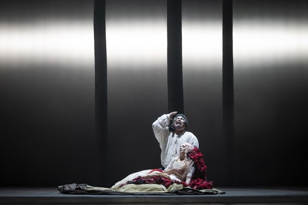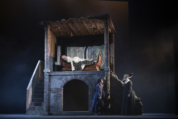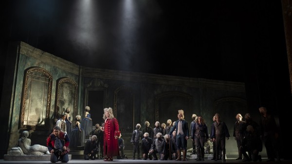 John Turturro wurde vor über 30 Jahren selbst in Cannes als bester Darsteller für die Titelrolle in Barton Fink ausgezeichnet, kommt also vom Film und das merkt man seinem Opernregie-Debut auch an. Nebelschwaden und diffuses Licht von Alessandro Carletti schaffen mystisch-geheimnisvolle Stimmungen in diesem Rigoletto, die traditionellen Kostüme samt turmhoher Perücken, die Marco Piemontese gestaltet hat, sind fürs Auge der Zuschauer gemacht; die Bühnenaufbauten von Francesco Frigeri mit der Außenfassade des herzoglichen Palazzos, die irgendwie schon bessere Zeiten gesehen hat, Gildas erhabenem Schlafgemach und der abgeranzten Kaschemme im letzten Akt sind die passende Kulisse für Turturros Erzählung der Geschichte. An einer psychologischen Deutung ist ihm nicht gelegen, vielmehr nimmt er den Zuschauer mit auf eine Reise in menschliche Abgründe und blättert so im Verlauf der Geschichte eine Seite nach der anderen um.