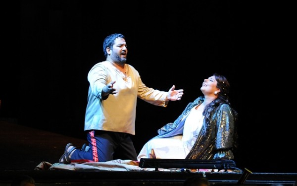 Der Otello von Efe Kislali, ein junger türkischer Tenor, ist eine Ausnahmeerscheinung. Vom körperlichen her ein „Riese“ ist sein beweglicher, baritonal gefärbter Tenor, der jedoch auch alle leidenschaftlichen Höhen problemlos auskosten kann eine rollendeckende Besetzung. Teilweise gewaltig und den Raum füllend bringt er eine Gestaltung auf die Bühne, die man so nicht allzu oft zu hören bekommen wird. Dunkel gefärbt, dennoch leuchtende Spitzentöne, ein Otello, von dem man sicher noch viel hören dürfte. Ihm zur Seite eine Desdemona, die zart und gleichzeitig durchschlagskräftig mit einer leuchtenden klangvollen farbigen Stimme ausgestattet, eine restlos überzeugende Leistung auf die Bühne bringt. Die junge Sopranistin, Deniz Yetim kommt ebenfalls aus der Türkei, ist ein wahrer Glücksgriff. Unglaublich zart und anrührend gestaltet sie ihre Partie mit einem innigen Piano, zart im Raum des Theaterrundes verfliegend ihr letztes „Ave Maria“. Sie ist, auch nach dem Willen von Magdalena Fuchsberger eine gleichwertige Partnerin Otellos. Beide können tosenden Applaus des Publikums einheimsen. Dies kann auch Rhys Jenkins als Jago. Der Waliser bringt eine tolle Leistung auf die Bühne. Sein Erscheinungsbild, des etwas übergewichtigen blondschopfigen Jagos, passt eigentlich überhaupt nicht zum gängigen Klischee dieser Figur, die von einem dunklen, hasszerfressenen Intriganten ausgeht. Hinter seiner Fassade, die Freundlichkeit verspricht, versteckt sich jedoch die ganze zügellose Leidenschaft eines durch und durch bösen Menschen. Beeindruckend sein leidenschaftlich herausgeschleudertes „Credo“, welches einem Schauer über den Rücken laufen lässt. Auch hier wieder bei der übrigen Besetzung ausgesprochen rollendeckende Leistungen, so Joska Lehtinen als Cassio, Jacek Janszewski als Ludovico, Marius Zaharia als Rodrigo, Irakli Gorgoshidze als Montano, Antonela Barnat als Emilia und Bogdan Ilisie als Herold.