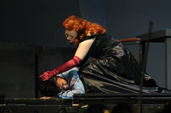 Als Tosca brilliert die junge russische Sopranistin Elena Stikhina. Sie tritt zum ersten Mal in Gut Immling auf und ich kann nur hoffen, dass es nicht zum letzten Mal sein wird. Ihr kräftiger wohltönender Sopran, der darüber hinaus mit beeindruckenden leuchtenden Höhen brillieren kann, reißt das Publikum zu Beifallstürmen hin. Ein sicheres Piano, welches in den Raum zu schweben scheint, kann ebenfalls äußerst beeindrucken. Auch darstellerisch kann sie einen überzeugenden Part bieten, obwohl sich hier sicher noch einiges feilen lässt. Der innige Zusammenhalt fehlt ein ganz klein bisschen, aber dies ist nur ein beckmesserischer Einwand, insgesamt eine überdurchschnittlich gute Tosca, die auch zu Recht den Beifall auf sich ziehen kann. Ebenso wie ihr Cavaradossi, der von Mario Zhang gegeben wird. Zu ihm ist nicht allzu viel zu sagen. Er hat in Gut Immling schon als Radames, Rodolfo und Don Carlos begeistert und auch diesmal kann er sein Publikum begeistern. Sein metallischer hoher Tenor ist in jeder Position steuerbar. Eine bombensichere gewaltige Höhe und ein entsprechendes Durchhaltevermögen zeichnen ihn auch diesmal wieder aus, eine exzellente Leistung.