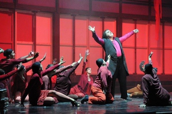 Am ersten Abend „Tosca“ von Giacomo Puccini. Der Regisseur Karsten Bohn verlegt das Stück vom Jahr 1800 in das Jahr 1940 und erzählt von einer Frau, die in die große Politik gerät und dort aufgerieben wird. Das Böse breitet sich überall aus und ist fast nicht aufzuhalten. Ledermantel, ein imaginärer Polizeistaat,