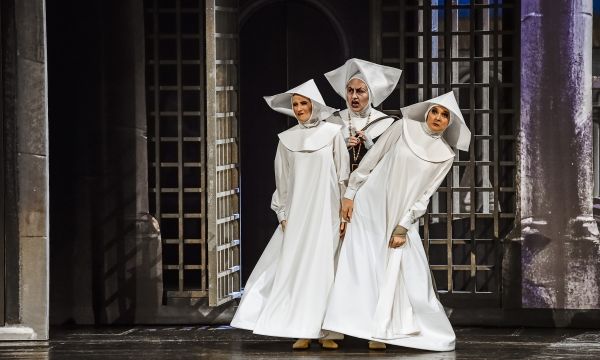 Die beiden Hauptrollen jedoch sind Teufel und Engel, entsprungen aus dem Wiener Volkstheater, gerade Alexander Kuchinka (Textfassung) fehlt es noch am rechten Timing, obwohl der Knecht Ruprecht ein sauberes Teufelchen ist, ein reines Entzücken der Engel Rupert in seiner grundgütigen Naivität von Matthias Winter. Eine höllische Abtissin Aglaia mit profunder Präsenz findet sich in Dagmar Schellenberger. Gerhard Ernst vollbringt in drei verschiedenen Partien ein kleines Wandlungswunder und schafft durch superbe Bühnenausstrahlung seine leichten stimmlichen Anstrengungen vergessen zu lassen. Auch Matthias Otte erweist sich in zwei Rollen als enorm wandlungsfähig. Dazu gibt es eine hübsche Choreographie von Sabrina Sadowska mit Balletteleven und Tänzern. Selbst der Intendant hat in den Reihen der Kleindarsteller seinen Auftritt, die Chöre zeigen sich musikalisch wie szenisch von temperamentvoll engagierter Seite.