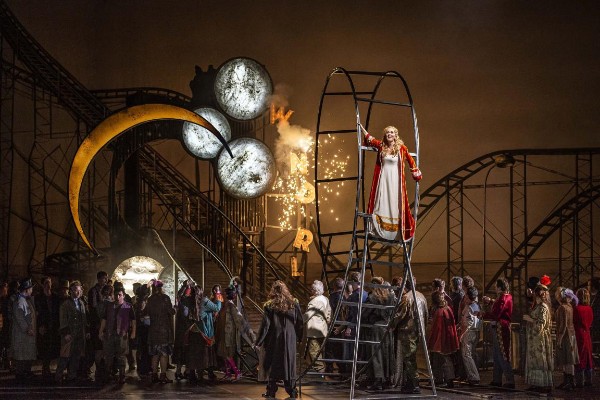 Nun war Richard Wagner ohnehin nicht pingelig, wenn es um die Verschiebung historischer Gegebenheiten in Zeit und Raum ging. Und so muss er sich gefallen lassen, dass die Dramaturgin Carla Neppl seine Texte und seine Musik nutzt, um die sozialen und zwischenmenschlichen Probleme eines ansonsten wenig beachteten Kokons der Rummelplatzbetreiber zu thematisieren, damit aber auch gleichzeitig zu verallgemeinern. Das Theater Chemnitz bildete aus seinen Opernchören, einem Kinderchor und Gastsängern weiterer Chöre sowie der Statisterie eine beeindruckende Menschengruppe gebildet. Die Kostümbildnerin Mercè Paloma hatte die Gruppe mit Kleidung aus allen Bevölkerungsschichten ausgestattet. Mit ausgezeichnetem Gesang und guten darstellerischen Leistungen übernahm die Gruppe eine tragende Rolle in den ersten beiden Aufzügen. Nach ihrer Klassenzugehörigkeit agierten sie mit den Solisten und machten den ersten Akt mit dem sich ständig bewegenden Achterbahn-Vehikel zu einem kurzweiligen Spektakel. Besonders gefiel mir, dass beim Gottesgerichts-Streit der Kampfplatz weggedreht war und man Chormitglieder vom Gerüst, gleichsam wie beim Fußball des Chemnitzer SC, die Kämpfer anfeuerten. Spielstätte des zweiten Aktes war die Unterkunft der Betreiber der Rummelplatzattraktionen. Die Aktionen passten aber über weite Strecken in herkömmliche Inszenierungen, auch wenn die Liegestützaktionen und die Weitergabe eines Befehls des Königs per Smartphone konservative Besucher irritierten. Das löste sich erst auf, als der Schwan wieder auf der Bühne erschien und Telramund vier depressive Rentner von einer Gartenbank aufjagte. Diese vier „Edlen von Brabant“ teilten den Chor in aktive Pro- und Contra-Gruppen, die ihrerseits die Handlung vorantrieben.