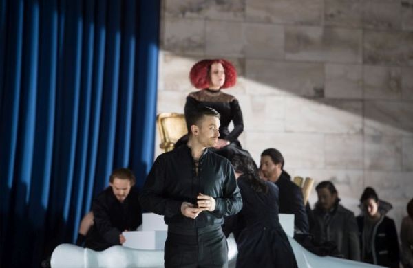 Es wird spannend sein, ihre Interpretation unter einem anderen Dirigenten zu erleben (z.B. konzertant an der Deutschen Oper Berlin im Mai). Wie erfüllend müsste es doch sein, die schönste Stelle der Oper (Marias Preghiera Deh! Tu di un’umile preghierai suono) von Diana Damrau in einem angemessenen Tempo und mit abgestufter Dynamik erleben zu dürfen. Gestern Abend klang diese Stelle überhaupt nicht nach demütigem Gebet und Bitte um Vergebung, sondern eher nach aufrührerischer Anklage eines marxistischen Mobs, der vorher anscheinend die Altkleidersäcke geplündert hatte. Der Chor der Oper Zürich (Einstudierung: Ernst Raffelsberger) wiederholte die traumhaft schöne Eingebung Donizettis mit vehementem und lautstark polterndem Gesang. Einen etwas einfacheren Stand in diesem Gefüge hatten die um die beiden Königinnen kreisenden Männer. Nicolas Testé (der Ehemann von Diana Damrau) gestaltete mit seinem herrlich strömenden Bass einen ganz wunderbar für sich einnehmenden Talbot, Andrzej Filonczyk verlieh dem Einflüsterer Elisabeths, Lord Cecil, markantes Profil. Zwischen den beiden Damen stand mit Pavol Bresliks Graf von Leicester ein überaus attraktiver Mann, und so war es natürlich glaubwürdig, dass die beiden Königinnen um ihn kämpften. Pavol Breslik war in der letzten Probenwoche von einer starken Erkältung geplagt gewesen und liess sich deshalb zu Beginn der Premiere ansagen. Er stand die Partie jedoch gut durch, überzeugte mit stimmlicher Ausgeglichenheit und an den gebotenen Stellen mit jugendlich-frischer Emphase (z.B. in der Lobpreisung Marias). Hamida Kristoffersen liess in der kleinen Rolle von Marias Vertrauter Anna Kennedy einmal mehr ihr interessantes stimmliches Timbre aufscheinen, man möchte der Sängerin wünschen, dass ihr auf der Zürcher Bühne bald mal spannendere Rollen zugeteilt werden. In der zentralen Stelle der Oper, der Begegnung der beiden Rivalinnen in Fortheringay, wurde dann allerdings doch noch ein vokaler Höhepunkt erreicht, das Sextett war von grösstmöglicher Intensität geprägt, bevor dann wieder atemlos zum Finale gehetzt wurde.