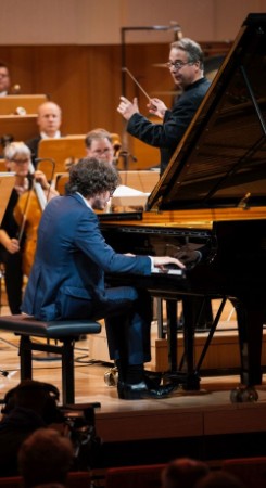 Auch der zweite Beitrag des Programms bestätigte dieses hohe Niveau und markierte für mich den Höhepunkt des Konzertes. Das Konzert für Klavier und Orchester Nr. 5 F-Dur, op. 102 von Saint-Saens wurde 1896 in Paris mit dem Komponisten am Flügel uraufgeführt. Er hatte es während einer Reise nach Luxor komponiert, weshalb es den Beinamen „Ägyptisches Konzert“ trägt. Wegen der immens hohen Anforderungen an den Solisten erklingt es leider nur sehr selten. Schon im 1. Satz, Allegro animato, werden ihm virtuose Läufe abverlangt. Hörner bringen eine träumerische Sommernachtstraum-Stimmung ein, im Kontrast dazu gibt es auch energische Passagen. Orientalisch-arabisch anmutendes Kolorit bestimmt den Mittelsatz, Andante – Allegretto tranquillo. Das Klavier intoniert ein nubisches Liebeslied, das danach die Streicher aufnehmen. Ohne Pause schließt sich der Finalsatz, Molto allegro, an, der für den Solisten rhythmisch hämmernde Passagen von enormem Krafteinsatz bereithält. Die schwelgerisch-rauschhafte Atmosphäre eines Bacchanal wird heraufbeschworen – für den Pianisten eine tour de force von allerhöchstem Anspruch an Rasanz und Bravour. Der 1990 geborene Lucas Debargue bewältigte diese Anforderungen souverän und bewies mit den beiden Zugaben von Eric Satie auch sein Gespür für duftig zarte Gespinste.