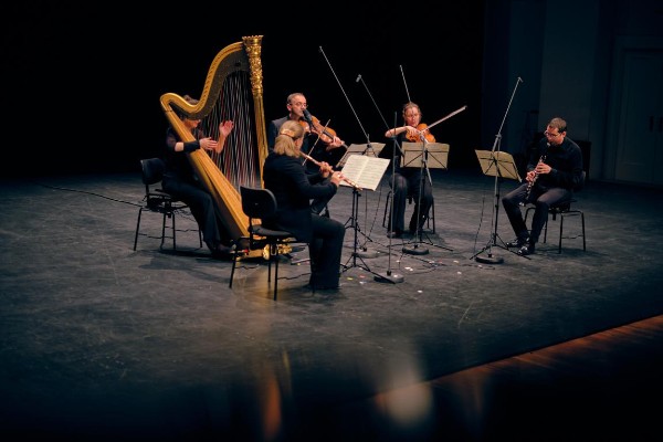 Mit einer interessanten Instrumentierung der „Fantasiestücke“ Robert Schumanns für Klarinette, Flöte, Harfe und zwei Bratschen von 2007 überraschten Robert Oberaigner, Rozália Szabó, Johanna Schellenberger, Michael Horwath und Marie-Annick Caron das Publikum. Sein besonderes Verhältnis zu Robert Schumann erläuterte Aribert Reimann mit sehr persönlichen Ausführungen und ergänzte mit Details seiner vorfahrlichen Beziehungen zu Robert Schumanns Endenicher Arzt Dr. Richarz, sowie der Erläuterung, wie er 2006 in den Besitz von Schumanns Krankenakte gekommen ist. Diesen bewegenden Ereignissen verdanken wir auch Reimanns „Adagio-zum Gedenken an Robert Schumann“ aus dem Jahre 2006, von der Streicherformation Tibor Gyenge, Lukas Stepp, Michael Horwarth und Titus Maak berührend vorgetragen.