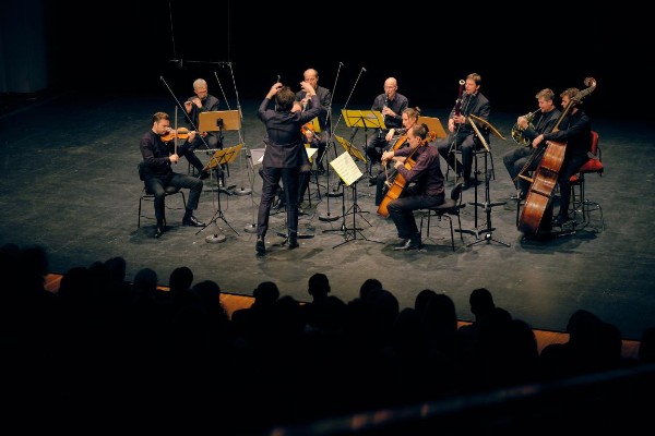 Reimanns subtile Näherung Franz Schubert verdanken wir die „Nocturnos für Violoncello und Harfe und die „Metamorphosen über ein Menuett von Franz Schubert (D 600) für zehn Instrumente“. Unter der musikalischen Leitung von Petr Popelka spielten Bernhard Kury (Flöte), Volker Hanemann (Oboe),Christian Dollfuß (Klarinette), Thomas Eberhardt (Fagott), Zoltán Mácsai (Horn), Michael Schmid, Emanuel Held (Violinen), Marie-Annick Caron (Viola), Titus Maack (Violoncello) und Martin Knauer (Kontrabass).