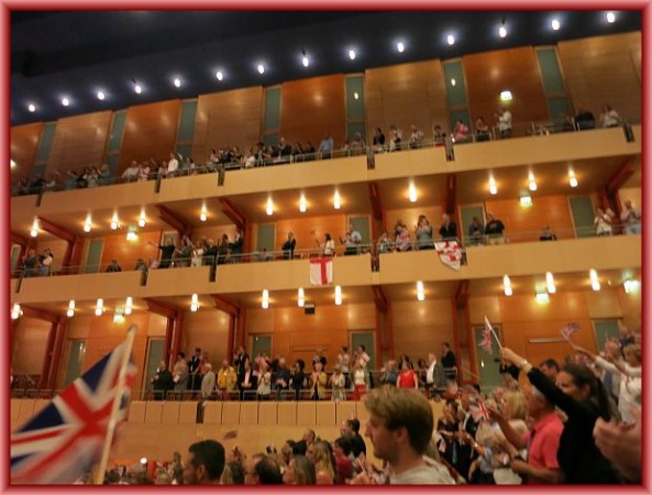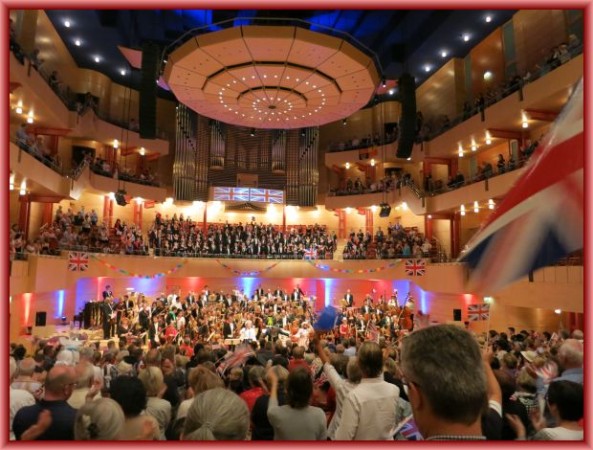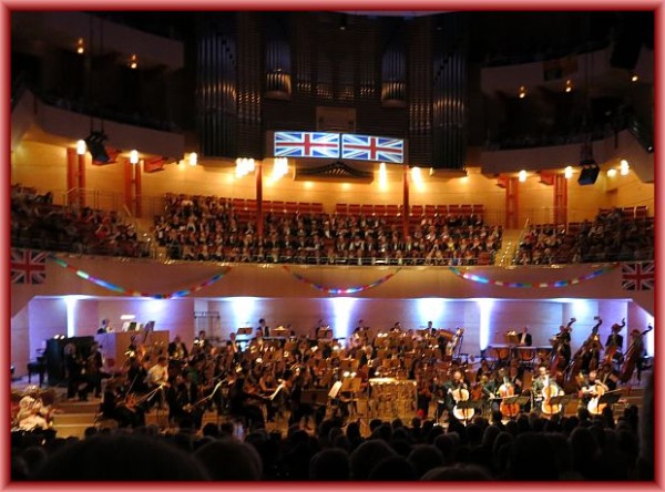 Da man dankenswerter weise hier die Übertitelungsanlage mitlaufen ließ, blieb kaum ein Mund geschlossen und kein Auge trocken. Das grandiose englische Gänsehaut-Feeling im Fahnenmeer und Gesang eines gigantischen Zuschauer-Kollektivs ließ den Chor von Mahlers Achter (Sinfonie der Tausend) als geradezu kammermusikalisches Scharmützel erscheinen. Und es war natürlich eine Selbstverständlichkeit, dass "Pomp and Circumstance" von Elgar, der ja nicht nur bei den Engländern als die wahre Nationalhymne gilt, in voller siebenminütiger Länge als Zugabe, wie es auch in der Albert-Hall in London Tradition ist, wiederholt wurde.