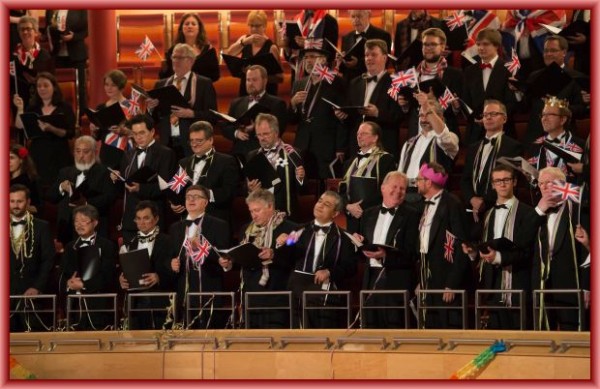 Der zweite Teil des Abends war wurde dann für das Publikum, das sich anfangs noch etwas schwer tat mit dem Viertelkniebeugen im Zwei-Sekunden-Rhythmus, zum actionreichen Erlebnis. Kam der Chor der 2000 zu "God Save the Queen" noch etwas zurückhaltend, kochte bei "Land of Hope and Glory" stimmungsmäßig der Saal über.