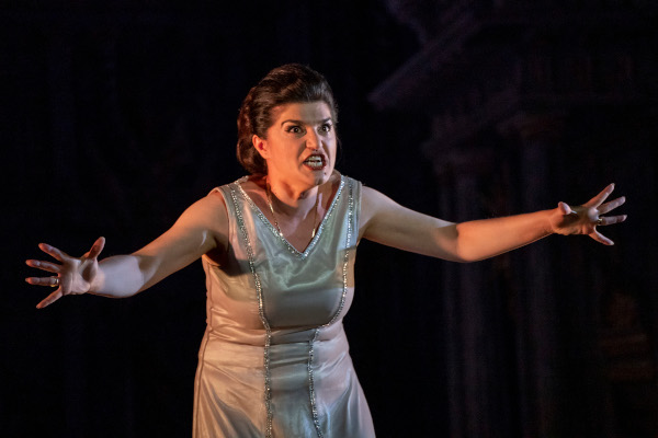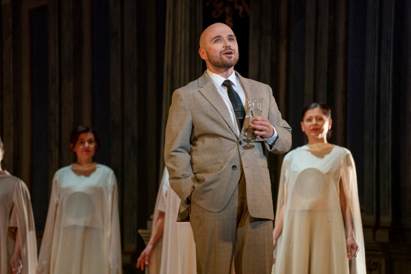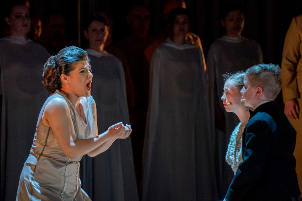 Für die Musica Bayreuth wählte man, in Kooperation mit den Nürnberger Gluck-Opern-Festspielen, die selten gespielte „Urfassung“ aus, Begründung: weil sie knapper und dramaturgisch spannender sei. Darüber lässt sich streiten. Auch am Abend der glänzenden Aufführung des J.K. Tyl Theaters Pilsen lässt sich der Eindruck nicht verrmeiden, dass insbesondere in den Szenen mit Alceste und ihrem Mann die Wiederholung der immer gleichen Affekte Schmerz und Trauer ein wenig zu viel des Guten ist. Wären nicht die erstrangigen Sänger-Darsteller, die die beiden einzigen Hauptrollen singen, so hervorragend, würde Alceste zwischenzeitlich in ruhigere Fahrwasser geraten, die ihr nicht guttäten, denn auch der fantastische, farbenreiche, nuancierte, in allem scheinbaren Klassizismus von innen glühende Musikdramatiker Gluck kann, wird er langweilig gespielt, langweilig sein. Glücklicherweise steht am Abend mit Anna Kasyan eine Alceste auf der Bühne, die die psychologische und längenmäßige Monsterpartie mit hinreissender Bravour – nein, nicht „bewältigt“, sondern gestaltet. Die Regie – Martin Otava – lässt ihr und den anderen (menschlichen) Solisten dabei wesentlich mehr Spielraum als dem Chor-Ensemble, das seinen Part stets statisch macht, was diese Alceste stellenweise fast zu einer oratorischen Oper macht. Dazu passen auch die Tänze der zwei Damen und zwei Herren (Choreographie: Martin Šinták), die Glucks Werk folgerichtig in frühesten, gelind modernisierten Klassizismus von 1770 transferieren, die Musik harmoniert schliesslich dazu. Auch der Eingang zur Unterwelt ist ein Tableau: mit vier stummen, offensichtlich auf den Einlass wartenden, weiß bemantelten, gleichsam antikischen Gestalten.