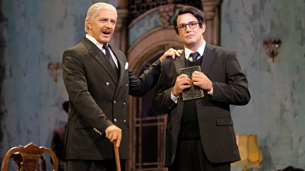 So setzt die Inszenierung immer wieder auf Pointen eigener Art. Die gravierendste dürfte die sexuelle Orientierung des Patriarchen sein, denn um das Oberhaupt, das gegen Carlos‘ Mutter um die Dominanz im Clan kämpft, herumzukriegen, setzt Asprando, der Bodyguard und wahre Vater des Jungen, zunächst erfolgreich seinen Körper ein, indem er Lottario provoziert, ihn, Asprando, heftig zu küssen (was Lottarios Trauer um den schließlich Getöteten motiviert) – so wie er ihn bei Giuditta in den Machtkampf führt. Kein Wunder, dass Petr Nekoranec den skrupellosen Kraftkerl nicht als Sopran, sondern als vokal höchst wendiger Tenor gestaltet. Sex ist übrigens nicht alles, aber vieles in dieser Inszenierung, in der ansonsten weniger geschossen als zumindest einmal (der Täter ist natürlich der böseste aller Intriganten, also Asprando) stranguliert wird. Interessanterweise drohen die Jungs immer nur mit ihren Kanonen, halten sie sich minutenlang die Waffe an die Köpfe – und prügeln sich höchstens um die Ehre, die scheinbar besseren Argumente zu haben als der Cousin des anderen Familienteils. Machohaftes Gehabe gilt viel in einer Gesellschaft, in der sich schon die Kinder als Jäger aufführen.