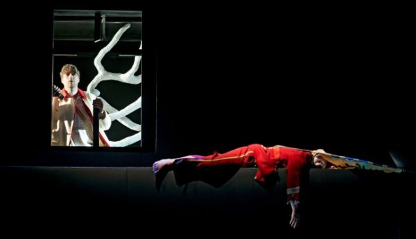 In der Rolle des Falken war mit Onur Abaci eine helle männliche Sopranstimme gesetzt. Da der Falke sich auch zum Gesang der „Stimme von oben“ (von geschmeidiger Leuchtkraft: Judith Braun) scheinbar qualvoll auf der Bühne bewegte, gelangte man zu dem Eindruck, dass szenisch diese beiden Rollen vereinigt werden sollten, was einer gewissen Logik nicht entbehrt. Mit kraftvoll hellem Bass gestaltete James Bobby seine Auftritte als Geisterbote. Die drei „Invaliden“ waren stimmlich kompetent mit Markus Jaursch (Einäugiger), das „Urgestein“ des Saarländischen Staatstheaters Hiroshi Matsui (grundsolide wie immer als Einarmiger) und Janós Ocsovai (Buckliger) besetzt.