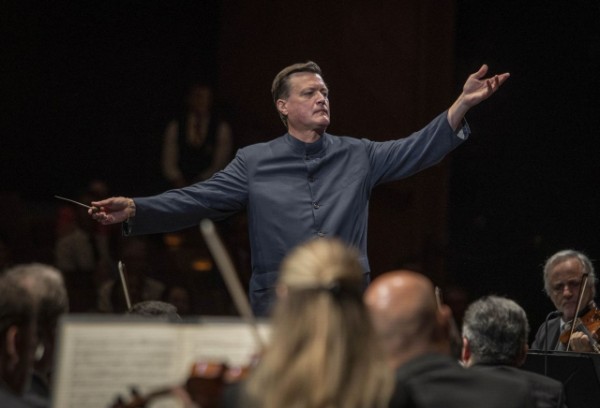 Mit zehn Celli, acht Kontrabässen, fünf Hörnern, vier Trompeten und drei Posaunen war das Orchester im Blech angetreten. Die in einer Reihe am oberen Ende aufgebaute Blechbläser-Phalanx wirkte wahrlich beeindruckend und sollte das musikalische Geschehen in der kommenden Stunde immer wieder eindrucksvoll beherrschen. Im 1. Satz geben nach dem zurückhaltenden und verklärten Beginn durch die Streicher gleich die Hörner mit geballter Kraft den Ton an. Das Andante des 2. Satzes beginnt mit großer Lyrik und setzt sich in einem langsamen, getragenen, ja trauermarschartigen Rhythmus fort. Hier lässt Thielmann sehr schön einige Einzelinstrumente zu „Wort“ kommen und ist mit den entsprechenden Musikern stets in intensivem Augenkontakt. Großartig sodann das sich langsam aufbauende Crescendo zu einem fast eruptiven musikalischen Höhepunkt, einmal mehr mit der unbestrittenen Dominanz der Blechbläserreihe. Im Scherzo geben dann immer wieder die Hörner mit klar artikulierten Klangkaskaden den Ton an. Aber auch die anderen Bläsergruppen beteiligen sich an Motiven, die auf eine Jagd hinweisen. Bestechend ist dabei die Transparenz der einzelnen Instrumentengruppen, die Thielemann offenbar ein erstes Anliegen ist. Im Finale mit seiner großen Dramatik sind zunächst auch romantischen Streicherlinien zu hören, bevor es dann wieder explosionsartig ins Tutti geht, mit mächtigem Auftritt der Posaunen, unterstützt von der zentral platzierten Tuba. Thielemann fordert den maximalen Einsatz dieser Musiker mit entsprechenden Körperbewegungen regelrecht heraus.