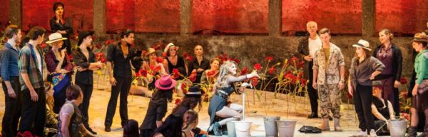 Einmal pro Saison stellen die Salzburger Festspiele Räumlicheiten des Festspielbezirkes dem Salzburger Landestheater zur Verfügung. Diesmal ist es die Felsenreitschule, in welcher insgesamt zehn szenische Aufführungen von Bizets Carmen stattfinden. Geht es bei der Ur-Carmen noch um den verführerischen Charme des Tabaks, ist diesmal der Focus auf härtere Drogen gerichtet, ist der Weg von der Verführung des jungen Soldaten José zur Droge bis zum finalen Schicksal der Verführerin Carmen als Opfer eines im Drogenrausch begangenen Eifersuchtsmordes die Essenz dieser Regiearbeit.