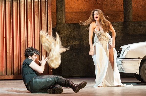 Oksana Volkova als Carmen erfüllte alle erwarteten Klischeés der Titelrolle bis hin zum beinahe freiwillig wirkenden Gang in den Tod um der Ehre willen, auch brachte sie einen in allen Lagen gut klingenden Mezzo ein. Sie ist es, die Don José hilft, den ersten “Schuss” zu setzen, so dass dieser, den Hallizunationen ergeben, den erklecklichen Rest der Handlung bis hin zum Mord im Rausch erlebt. Micaela, die Russin Elena Stikhina, eine ungewohnt dominante Figur und nicht weniger verführerisch als Carmen, erscheint im Schmugglercamp dem José und den anderen Süchtigen im Rausch als Madonnenfigur, ein plausibler und köstlicher Gag. Sie singt, mit schönem, rundem Sopran ihre Arie, stimmlich schon weniger in der spanischen Provinz zu Hause, eher schon ins dramatische Fach einer Aida und Sieglinde unterwegs.