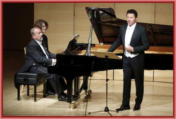 Als bestens aufeinander eingestimmt präsentierten sich am 27.8. Piotr Beczala und Helmut Deutsch mit einem Programm des ausgehenden 19. und frühen 20. Jahrhunderts. Teil 1 war italienischen Kompositionen vorbehalten: Nach drei Arien aus „Arie di Stile Antico“ von Stefano Donaudy, die Beczala die Möglichkeit boten, die ganze Bandbreite und vielfarbige Palette seines warmen Tenors vorzustellen, folgten zunächst vier echte Volkslieder von Ermanno Wolf-Ferrari (u.a. das rhythmisch-flotte „O si che non sapevo“). In den sechs sich anschließenden Ottorino-Respighi-Lieder trumpfte der Sänger in „Lagrime“ zunächst passend opernhaft auf mit strahlenden Höhen, schier endlosen Bögen und einem traumhaften Wechsel von forte zu piano auf dem letzten Wort „… morta“; mit solchen Finessen zeigte er sein großes Können in gesanglicher Gestaltung. Helmut Deutsch breitete Beczala jeweils den entsprechenden Klangteppich einfühlsam aus, auf dem dieser mit bester Diktion und gesangstechnisch auf voller Höhe, mit eleganten Übergängen und lockeren Verzierungen spielte. Durch sein sensibles Eingehen auf den Sänger, gute Tempo- und Agogik-Vorgaben bei den Vorspielen sowie die Lieder passend zu Ende führenden Nachspielen trug der Altmeister der Klavierbegleitung entscheidend zum großen Erfolg des Abends bei, der im zweiten Teil polnischen Komponisten gewidmet war: Sechs Lieder von Karol Szymanowski, sieben von Mieczyslaw Karlowicz und vier von Stanislaw Moniuszko stellten die beiden Künstler im polnischen Original vor. Dabei musizierten sie die Steigerungen innerhalb der Lieder von Szymanowski absolut einheitlich; von Karlowicz‘ Liedern gefiel besonders „Vor der ewigen Nacht“ mit dramatischem Anklang. Sehr unterhaltsam waren Moniuszkos „Die Spinnerin“, deren „Arbeit“ man in den flinken Klavier-Rotationen hörte, bis „der Faden riss“, und die Vertonung des „Heidenröslein“ mit Nonensprung (?), die Beczala mit Augenzwinkern sang. Mit stilistisch unterschiedlichen Zugaben bedankten sich die Künstler für den stürmischen Beifall; manche Zuhörer waren „enttäuscht“, da es nicht „wie in Zürich“ sieben – so hörte man aus dem Publikum -, sondern wie bei der Schubertiade üblich nur drei Zugaben gab. (ME)
