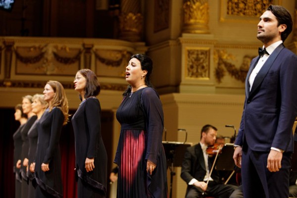 Die Plätze im Mittelbereich der siebten Reihe der Semperoper in einer „Butterfly-Premiere“ sind eigentlich ein Traum. Kaum Direktschall des Orchesterklangs aus dem Graben, dafür die volle Reflexdröhnung von der Decke, gemischt mit den feinzilesierten Brechungen von den Rängen, geben eine vollkommene Basis für den horizontal einströmenden Gesang von der Bühne.