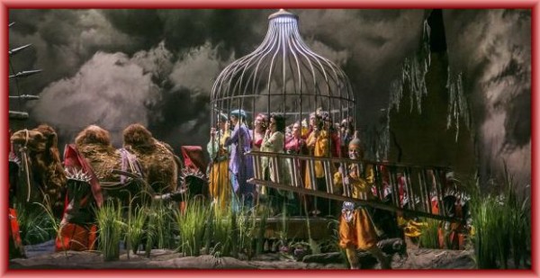 Mit seiner „Entführung“ hatte Mozart ab 1782 nach einigen Anlaufschwierigkeiten auf Dauer durchschlagenden Erfolg, was sicher auch an der damaligen Faszination für den für die Zeitgenossen so geheimnisvollen Orient zu tun hatte. Und genau da setzt die Inszenierung von Michiel Dijkema an, der auch für das Bühnenbild verantwortlich war. Besonders die knallbunten, fantasiereichen Kostüme von Claudia Damm und Jula Reindell machten deutlich, wie man sich den Orient in seiner ganzen Farbigkeit vorstellen konnte. Damit hatte der niederländische Regisseur erfreulicherweise der Versuchung widerstanden, das derzeit mehr als heikle Verhältnis Christentum/Islam zu aktualisieren. Erfolgreich betonte er dagegen den Witz der Spielszenen zwischen Osmin und dem Buffo-Paar Blonde/Pedrillo. Warum sich allerdings Selims Palast in einer sumpfigen Insel-Landschaft befinden muss, in der alle Beteiligten stets mit vom Knie abwärts verschlammter Bekleidung und verdreckten Stiefeln oder Schuhen herumlaufen müssen, das hat sich mir nicht erschlossen; auf Dauer wirkte das nur noch übertrieben und albern. Da sorgten die beiden zweihöckrigen Kamele, die eine überdimensionierte Sänfte für Konstanze und Selim sowie einen Käfig mit einer Schar Haremsdamen zogen, schon eher für Amüsement. Das gilt auch für das große Krokodil, das bereits zur Ouvertüre auftrat – wohl das Muttertier aus der Bayreuther „Ring“-Inszenierung, das sich vom Berliner Alexanderplatz in die Semperoper verlaufen hatte. Im Übrigen gab es gut nachvollziehbare Personenführung in der märchenhaften Geschichte von der Entführung aus dem Palast des zunächst unnachgiebigen Bassa Selim; der aus dem Fernsehen bekannte „Istanbul-Kommissar“