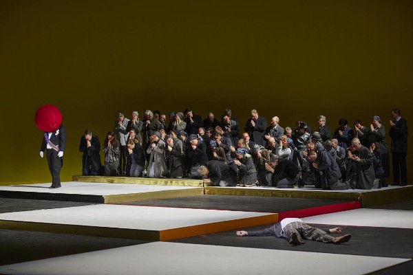 Die handwerklich hervorragende Inszenierung mit ihren subtilen Personenführungen begann im ersten Teil fast klassisch, lebte zunächst von einigen eindringlich-beklemmenden Bildern und der wechselvollen Bühnenbauten Helmut Brades. Dazu gehörte ein mehrere Minuten dauerndes Intermezzo von neun Schlag-Instrumenten, zur Verdeutlichung der Verhörszene des Barbiers, ein absolutes Novum im Operngeschehen. Auch die von Katerina von Bennigsen und Bo Skovhus grandios umgesetzte Sturmbahn-Szene, ein Hinweis auf die neue Wehrhaftigkeit unserer Gesellschaft, gehörte dazu.