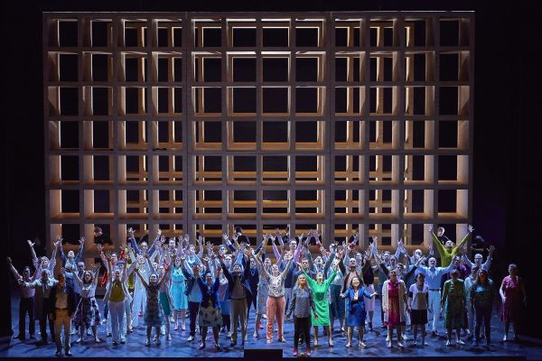 Und die Inszenierung? Die Bühne von Susanne Gschwender zeigt ein riesiges Holzregal, in dem die Protagonisten mitunter wie in einem Setzkasten sitzen. Die Regalteile verschieben sich und wecken die Assoziation von Schluchten zwischen stilisierten Hochhäusern. Zunächst sieht man eine mit ihrem Kind ballspielende Familie. Kinder, die immer wieder in diesen Häuserschluchten spielen, symbolisieren die Hoffnung, die der Gesellschaft versagt scheint. Denn Bieito sieht für sie keine Erlösung. Schmerz und Trauer bestimmt das Schicksal der Solisten: Die Mezzosopranistin ist zwischenzeitlich an das Regal angeschmiedet, setzt sich das Messer an die Kehle und lässt das Blut auf ihr knallgelbes Kleid rinnen. Beim „Offertorium“, wo von Opfern und Gebeten die Rede ist, wird eine Nackte wie ein Opfer aufgebahrt. Die Sopranistin ist durchweg eine Leidensfigur, die vom Chor attackiert wird. Der reckt oft die Arme flehentlich zum Himmel. Aber alles ist vergebens. Am Ende liegen alle wie tot da.