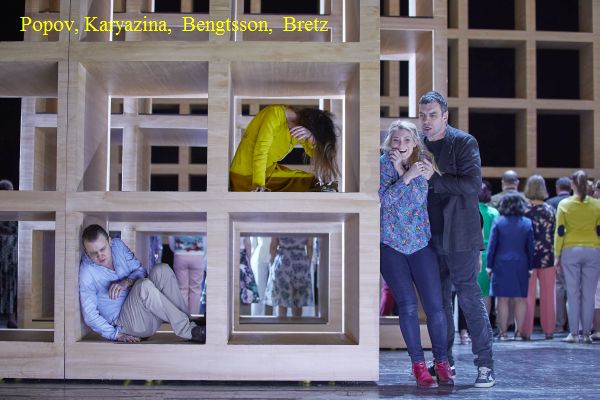 Selten hat sich Bieito bei einer Inszenierung so zahm gegeben wie hier – zum Glück für die Musik, die sich unter der Leitung von Kevin John Edusei in ihrer ganzen Pracht entfalten konnte. Edusei und das Philharmonische Staatsorchester offerierten eine breite dynamische Palette, die von zartesten Geigentönen bis zu den machtvoll aufgebauten Klängen des Jüngsten Gerichts reichte. Eindruckvoll der Klang der von oben tönenden Posaunen, berührend das innige Flehen um Gnade. Der Chor zeigte sich dabei in imponierender Bestform. Eberhard Friedrich hat hier einmal mehr hervorragende Arbeit geleistet. Auch bei den Solisten gab es durchweg gute und homogene Leistungen. Maria Bengtsson konnte mit ihrem lyrischen Sopran weitgehend überzeugen, obwohl man manche Passagen schon schwebender und ätherischer gehört hat. Nadezhda Karyazina führte einen glutvoll geführten Mezzo ins Feld, Dmytro Popov glänzte nicht nur bein „Ingemisco“ mit kraftvollem, höhensicherem Tenor und Gábor Bretz sorgte mit seinem schlanken Bass für reinstes Balsam.